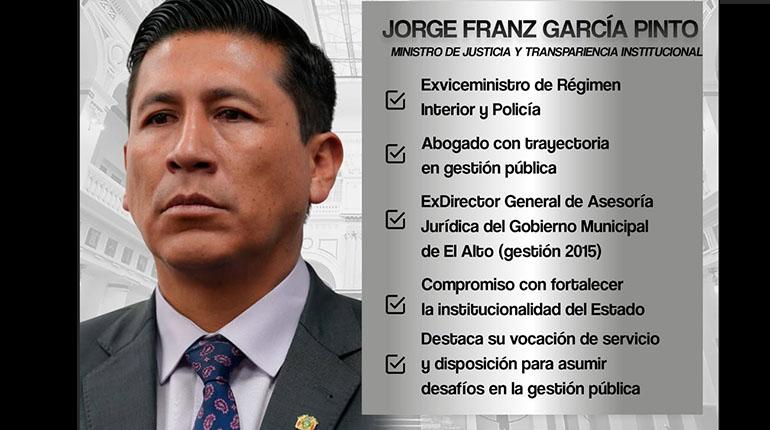 Jorge Franz García Pinto asume como nuevo Ministro de Justicia y Transparencia Institucional, marcando el inicio de una nueva etapa enfocada en fortalecer la institucionalidad, promover el acceso a la justicia y consolidar políticas de transparencia en el Estado.