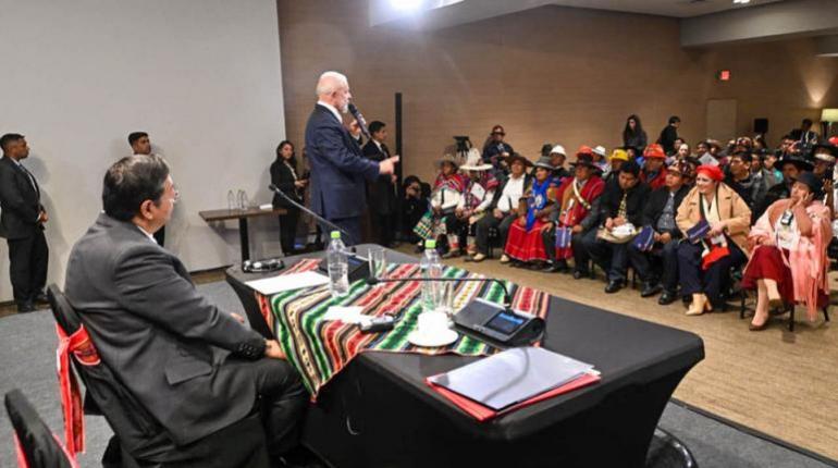 Lula pidió a dirigentes de sectores sociales unidad, solidaridad y desarrollo, durante un encuentro en el que también participó el presidente Luis Arce, dijo el viceministro de Coordinación con Movimientos Sociales. Juan Villca, quien agregó  que Lula dio una charla basada en su experiencia como dirigente sindical y Presidente.