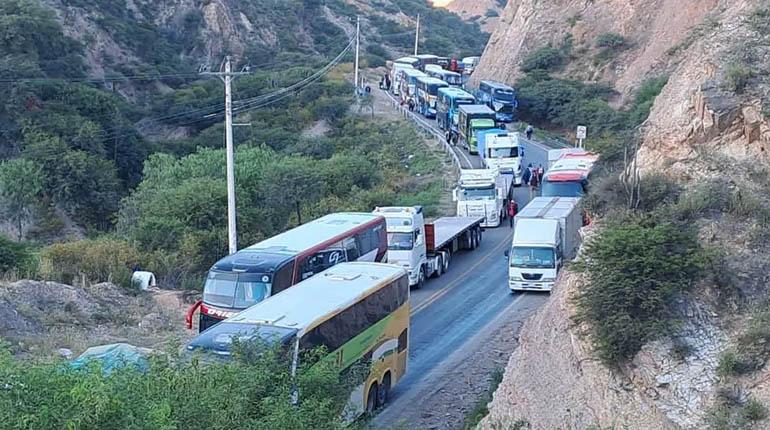 Miembros del Transporte Libre de Cochabamba instalaron un bloqueo en la carretera que conecta al departamento con Oruro y La Paz, el sector denuncia “invasión” de rutas y señala al transporte interprovincial.
