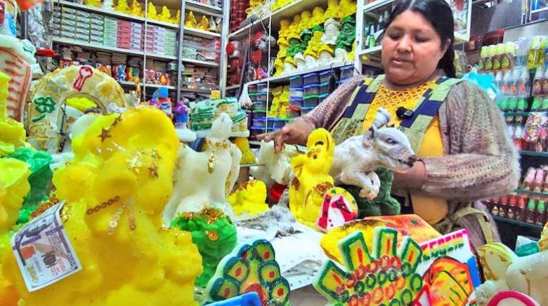 El mercado La Pampa concentra la venta de insumos para el ritual de la q’oa del Año Nuevo 2026