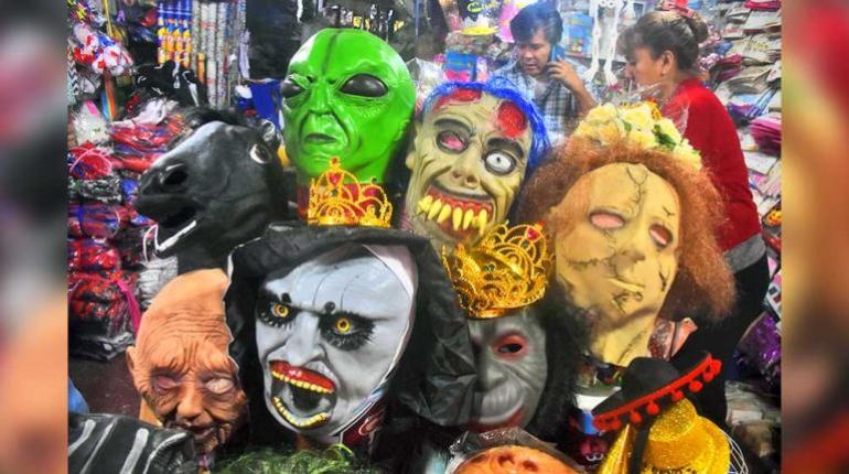 A pocos días de Halloween, el 31 de octubre de 2025, el comercio de máscaras terroríficas se incrementa en los principales mercados y predominan los disfraces de personajes clásicos como vampiros, brujas, zombies, fantasmas y esqueletos.