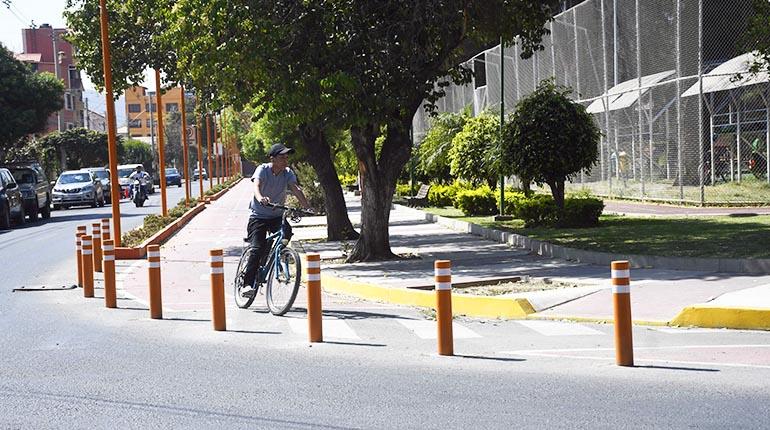 Los Tiempos realizó un recorrido por la ciclorruta del centro y evidenció que existe bastante circulación de ciclistas. Sin embargo, hay algunas balizas rotas en varios tramos.