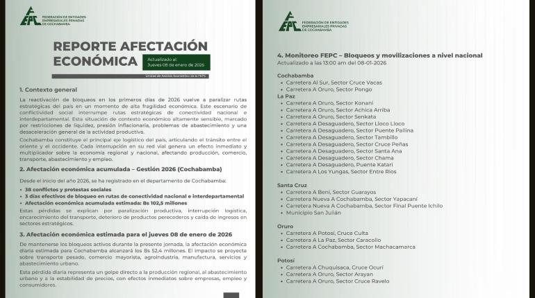 Las autoridades informaron que no existe una actualización que permita rehabilitar los viajes, ya que los puntos de bloqueo se mantienen activos tanto en la carretera nueva como en la antigua hacia Santa Cruz, además de las rutas hacia el occidente boliviano.